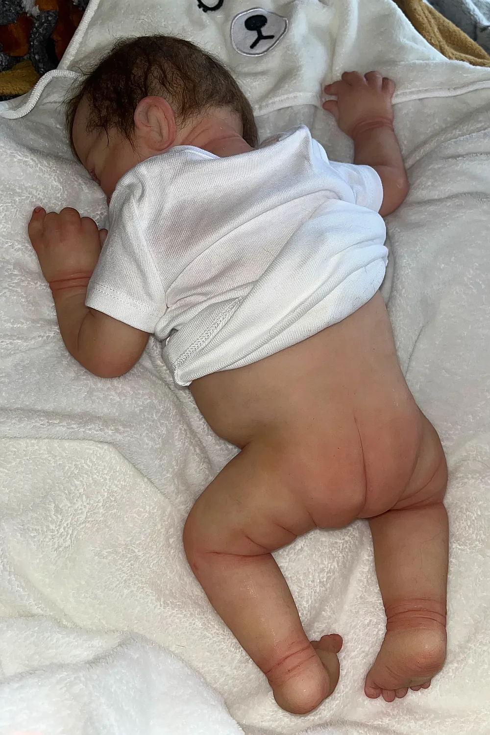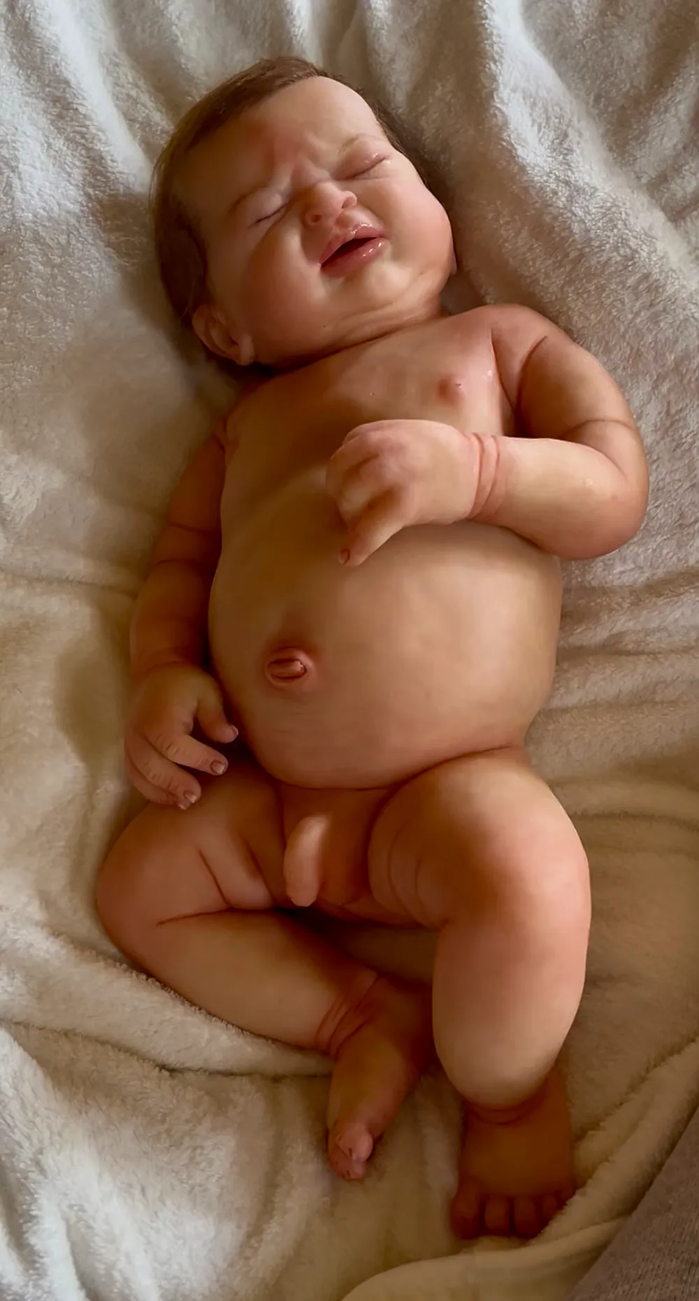 Amelia Rose is a gorgeous, very detailed 17 inch full body silicone. He weighs 7 Lb, but feels heavier to me. He does not have armatures as he doesn’t need them! He does not have a drink and wet system.