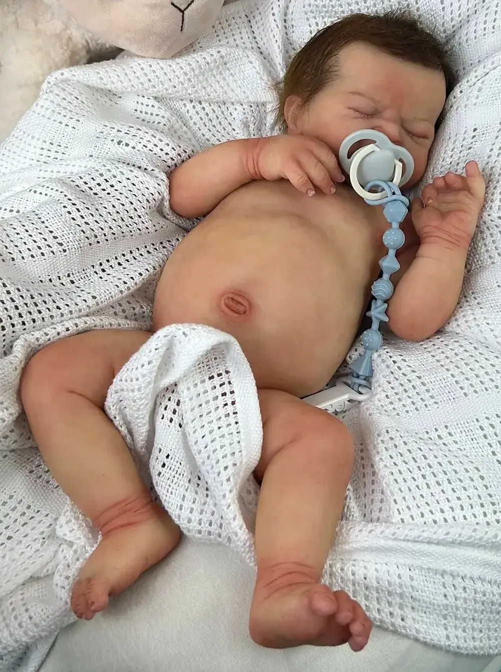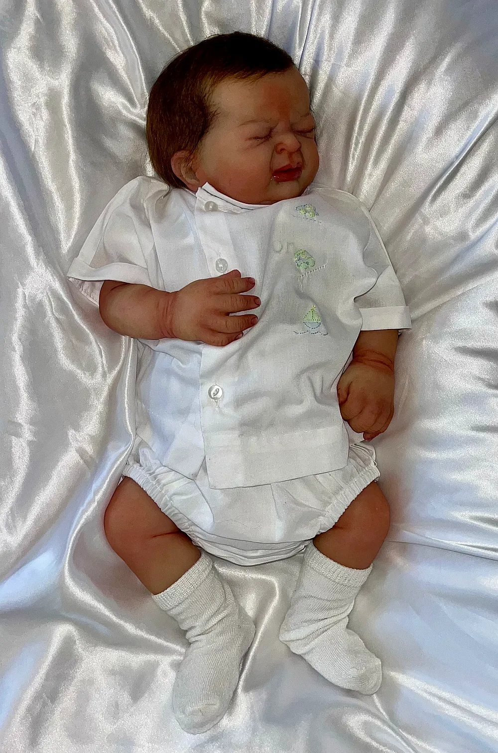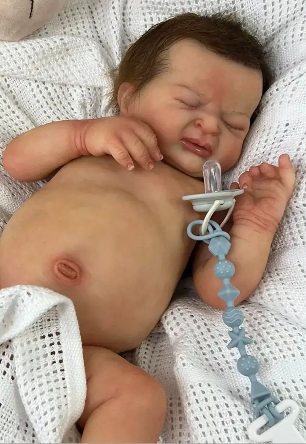 Amelia Rose is a gorgeous, very detailed 17 inch full body silicone. He weighs 7 Lb, but feels heavier to me. He does not have armatures as he doesn’t need them! He does not have a drink and wet system.