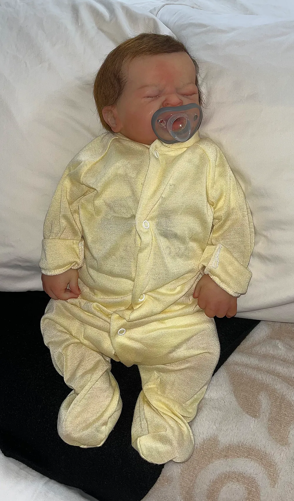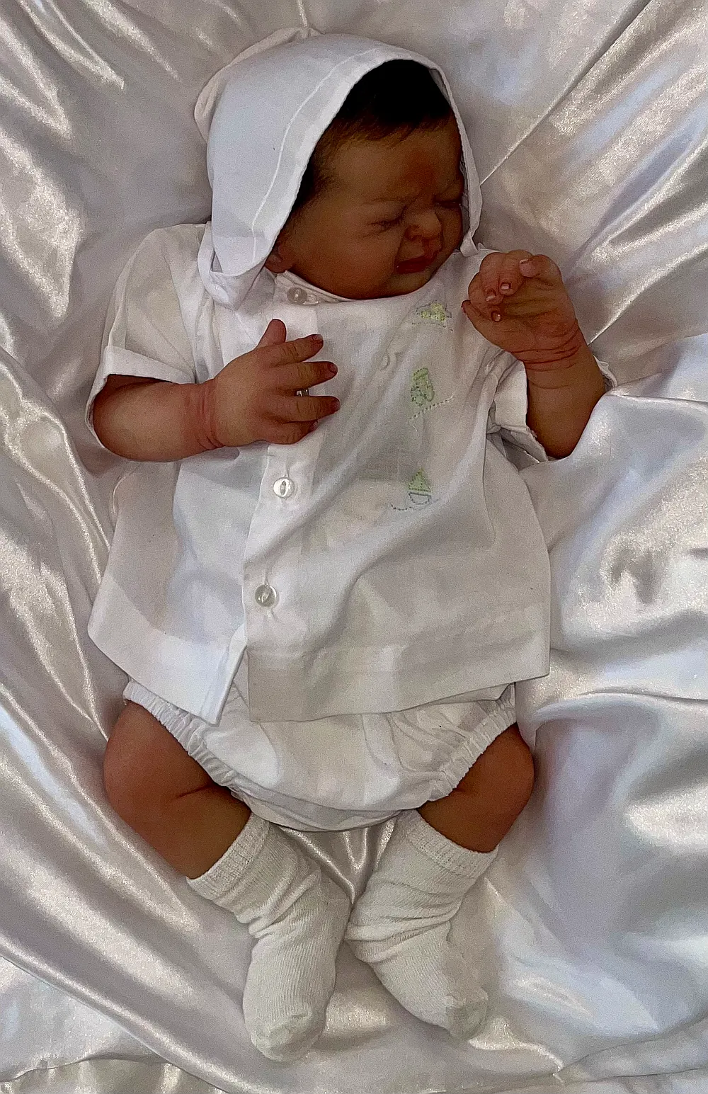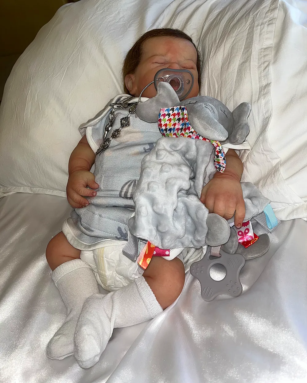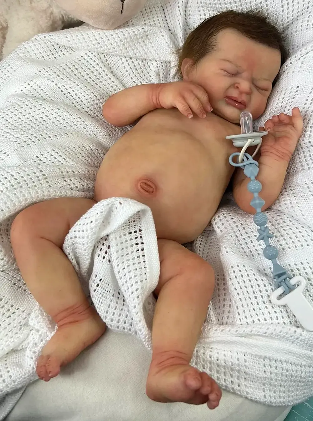 Amelia Rose is a gorgeous, very detailed 17 inch full body silicone. He weighs 7 Lb, but feels heavier to me. He does not have armatures as he doesn’t need them! He does not have a drink and wet system.