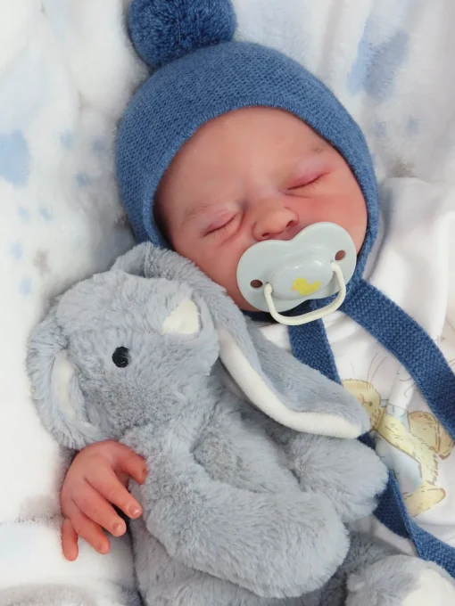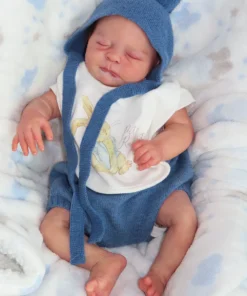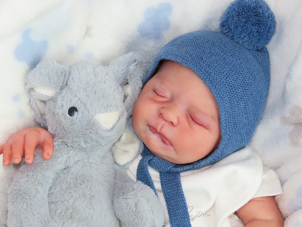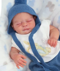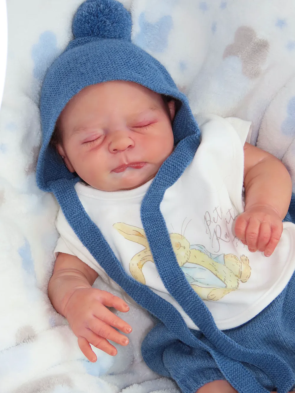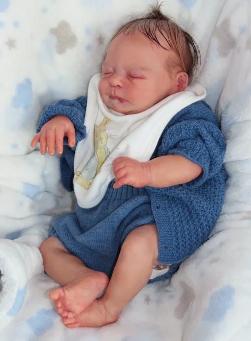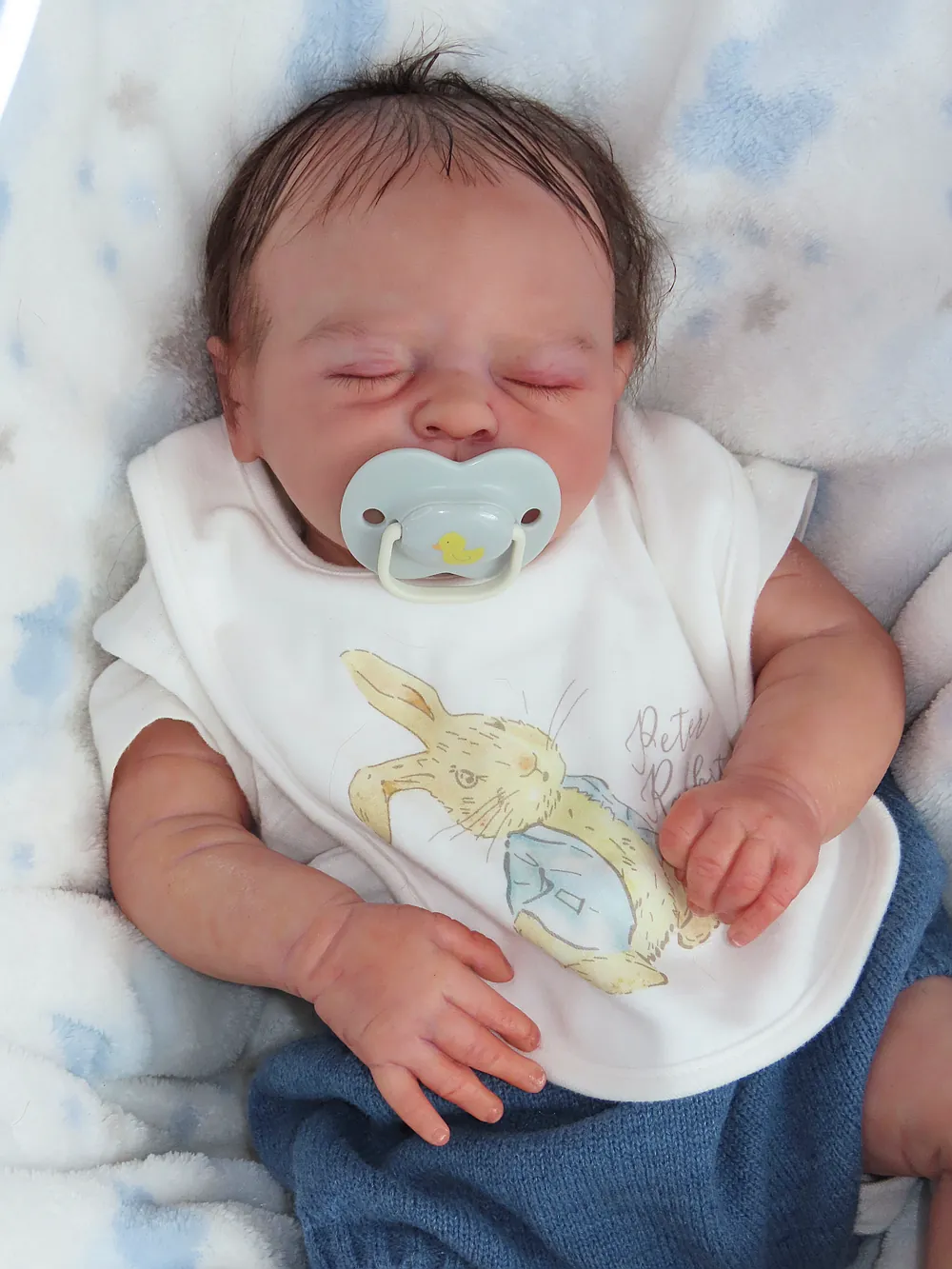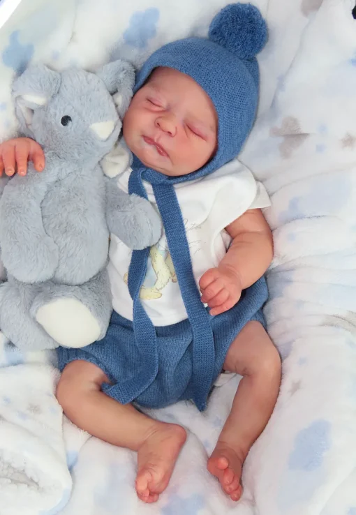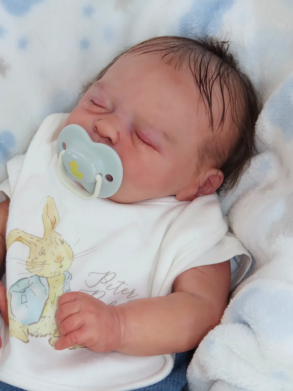 This beautiful boy is a limited edition sculpted and painted by Harley Rose & Bobby Wills and has veining, textured skin and is weighted to feel real. His hair is rooted on top of painted hair with Sarah silk in medium brown mohair.