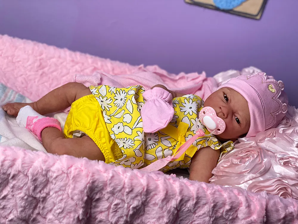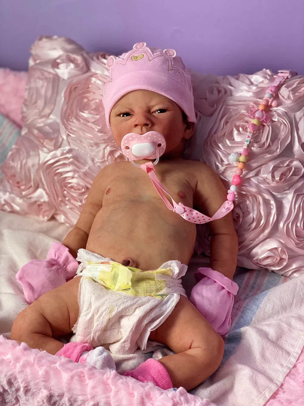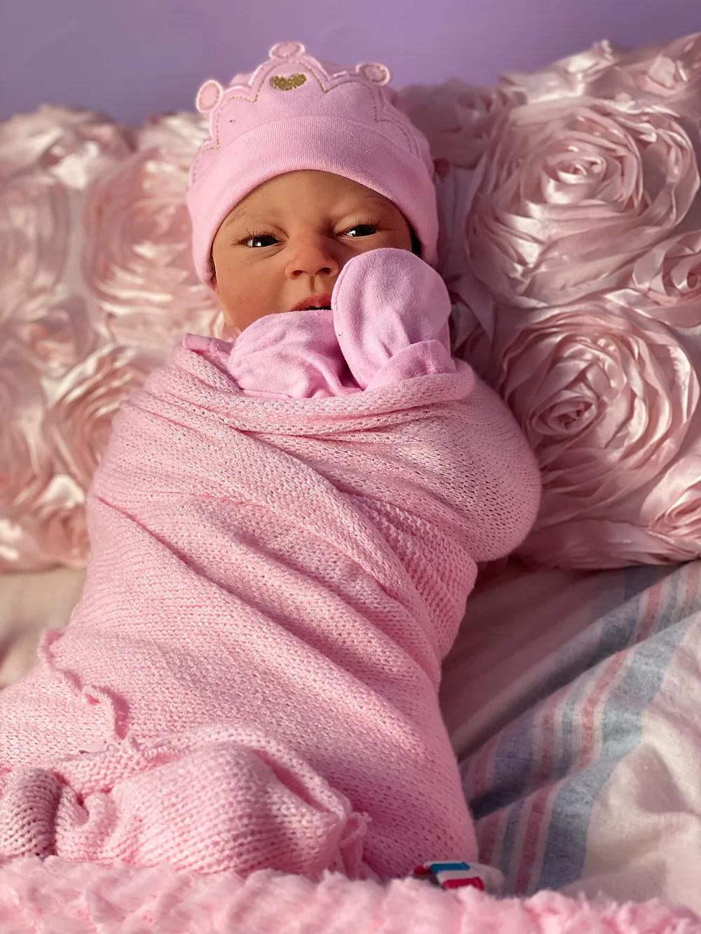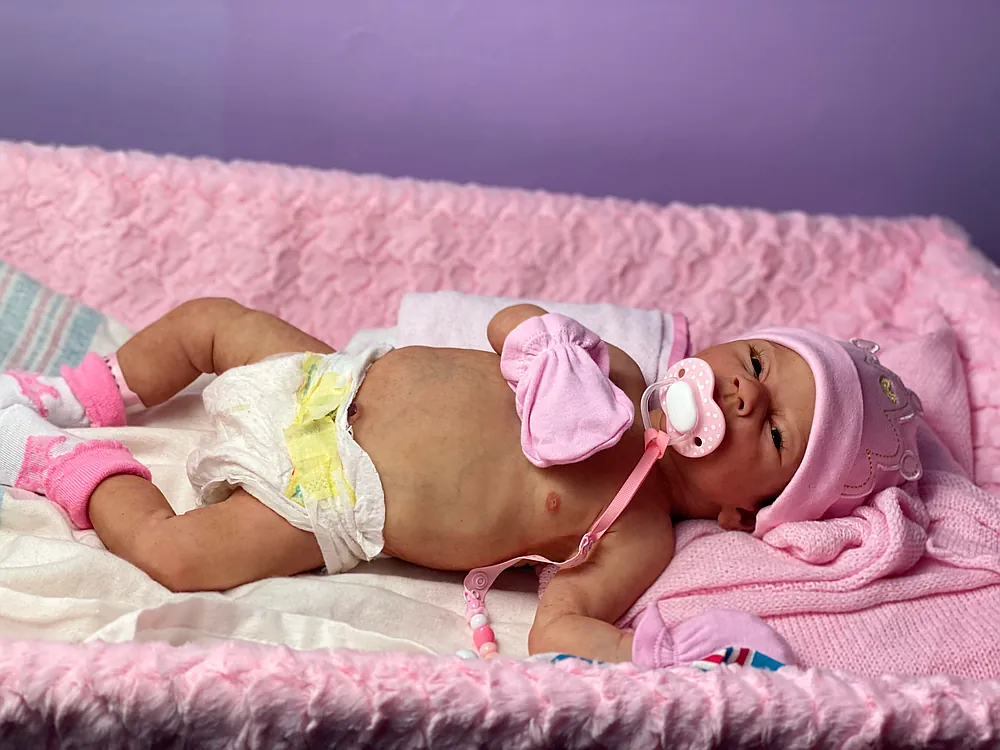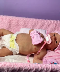 Charlotte is 21 inches and weighs 9 pounds 1oz. She is poured in a soft blend platinum silicone.
