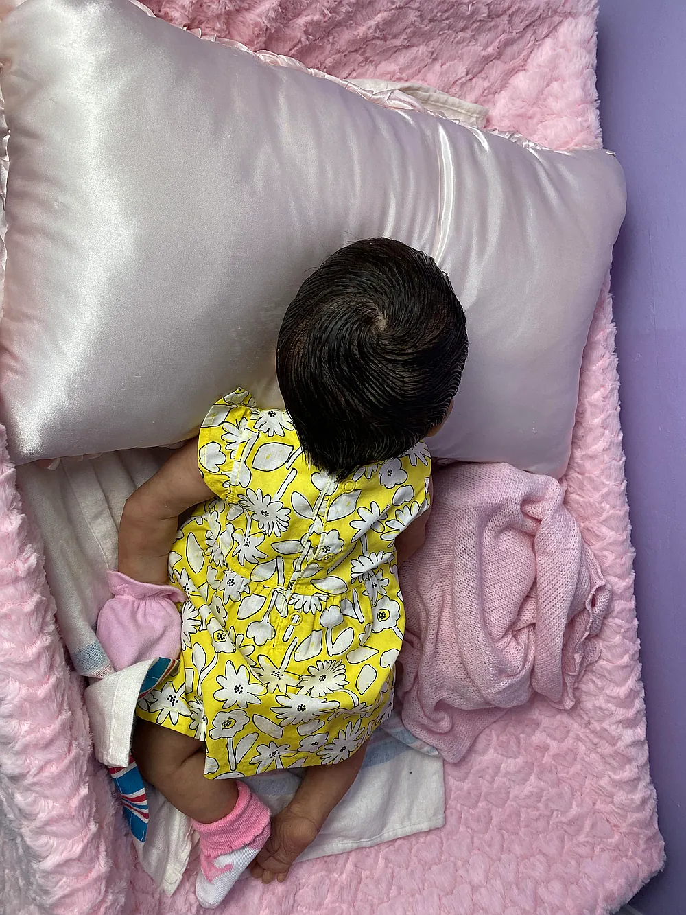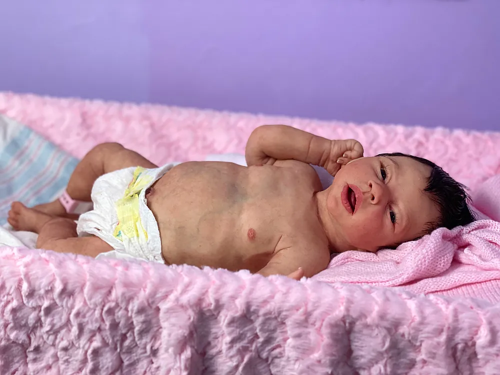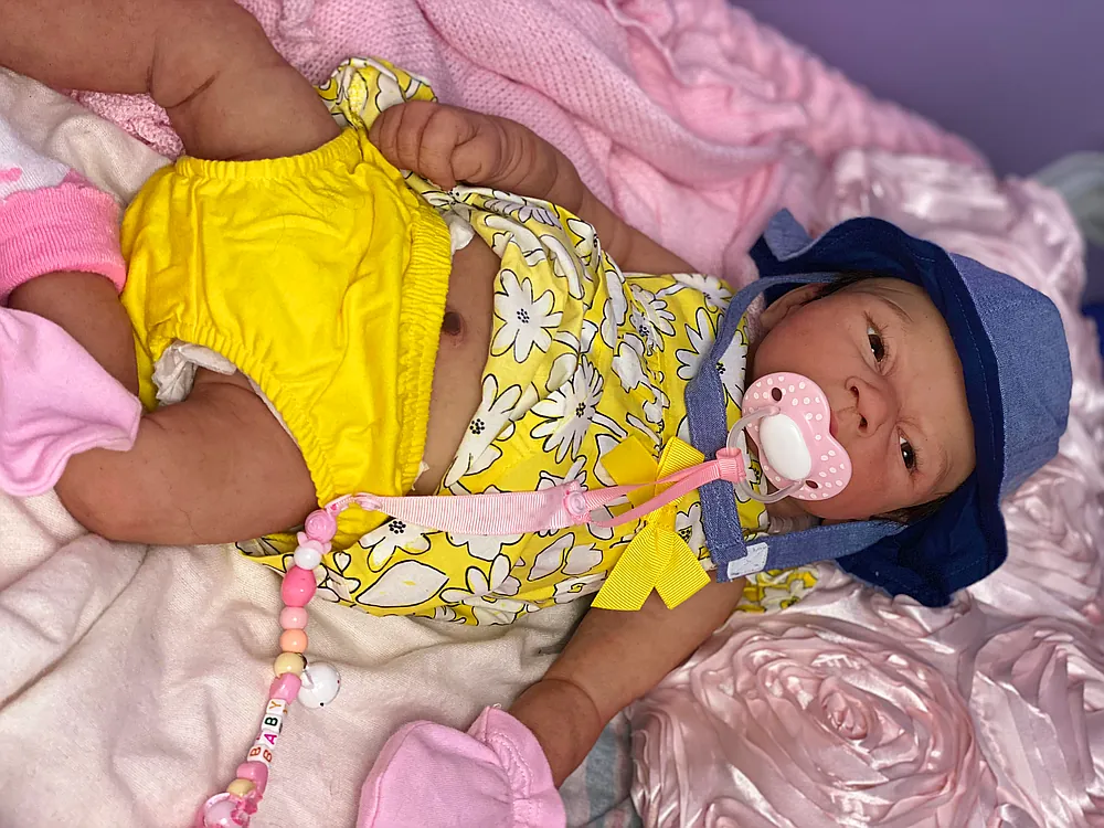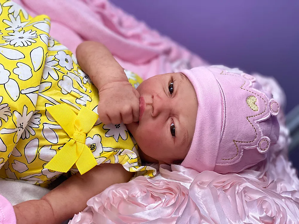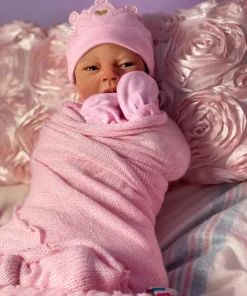 Charlotte is 21 inches and weighs 9 pounds 1oz. She is poured in a soft blend platinum silicone.