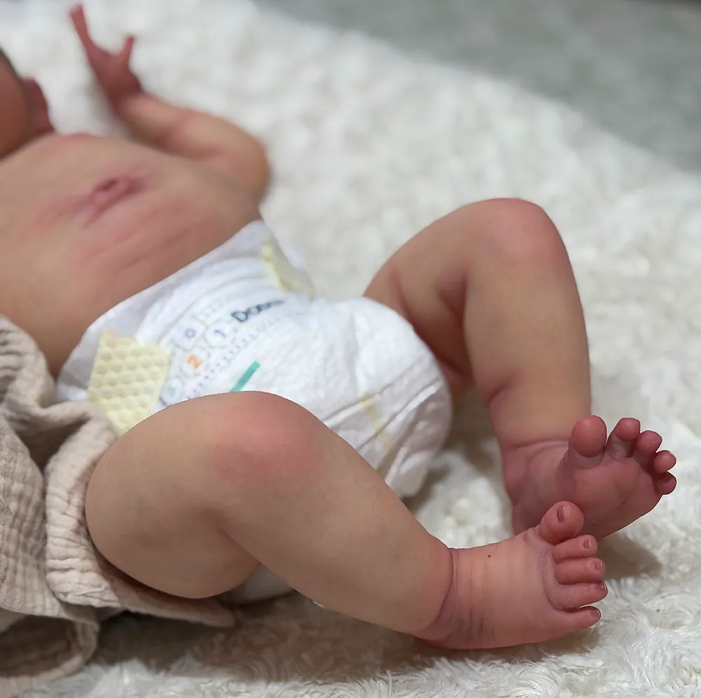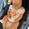This baby boy is wearing size newborn clothing in his listing’s photos.