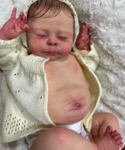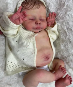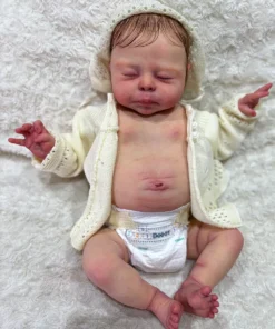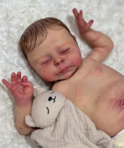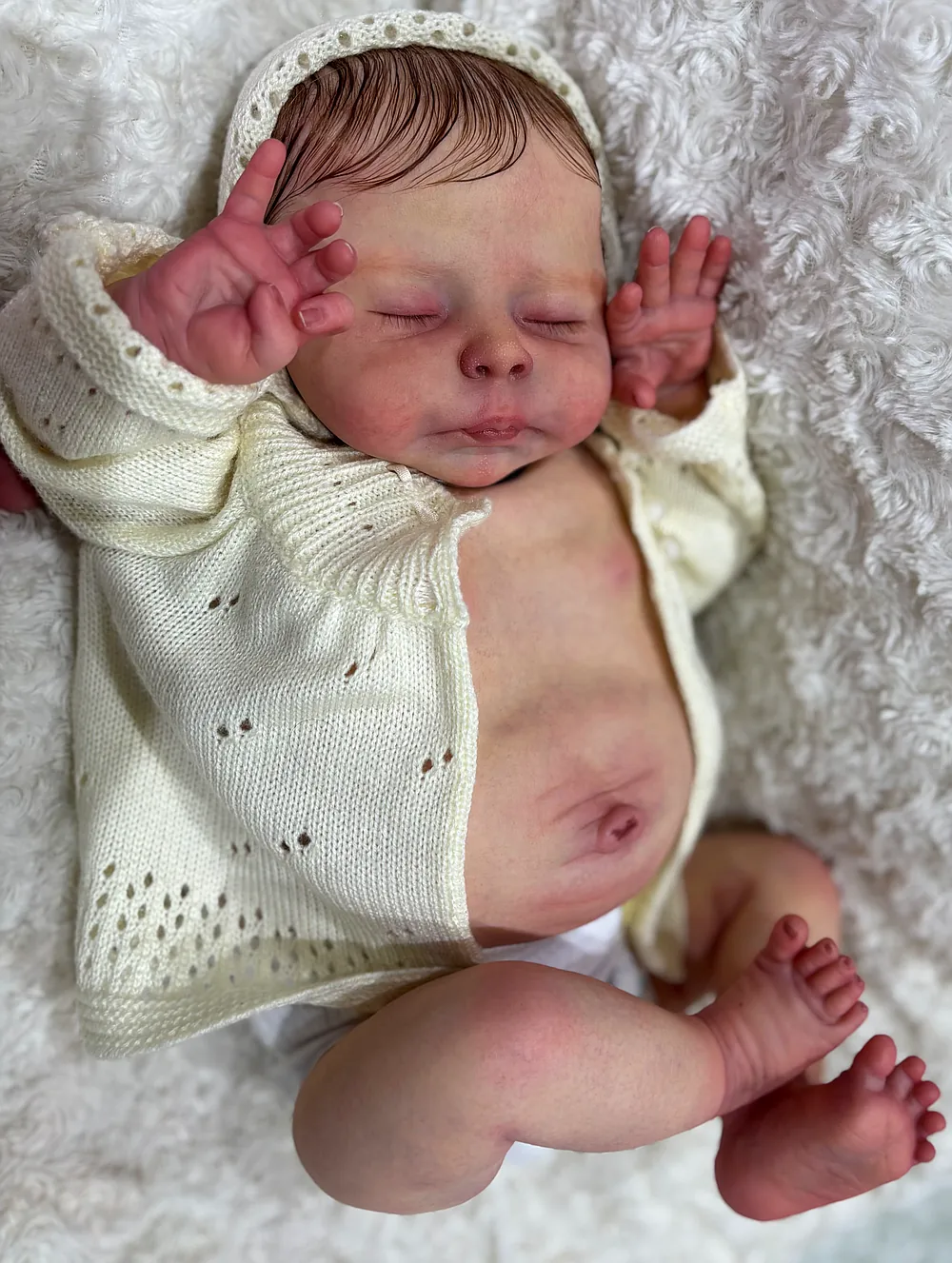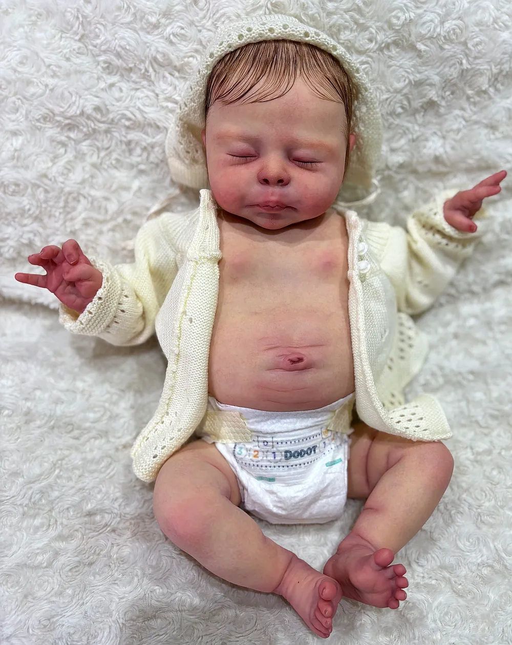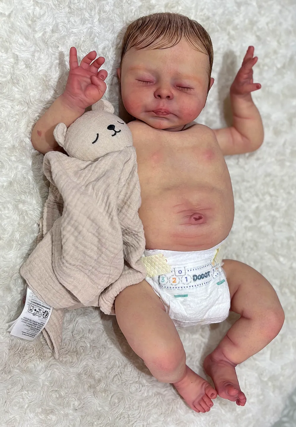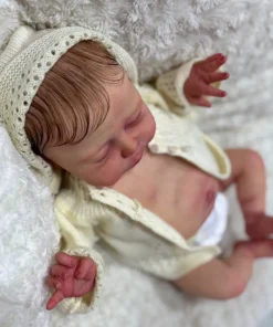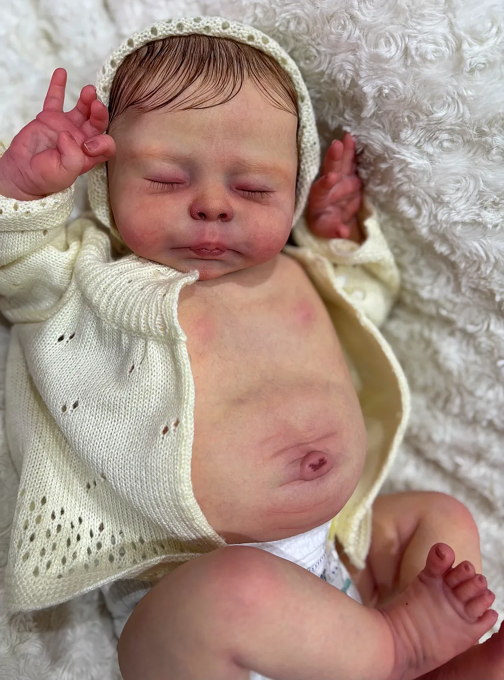 He has brown premium mohair mono and micro-rooted in a natural hair growth direction and matching rooted eyelashes.