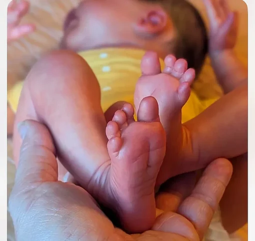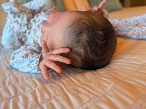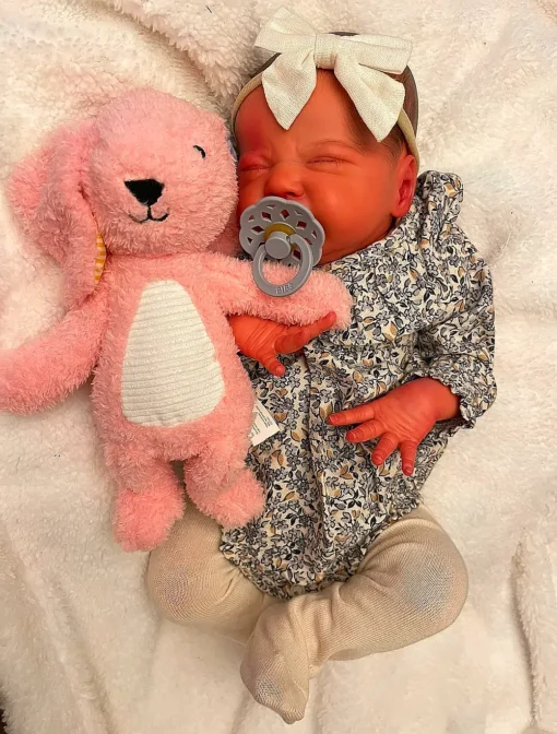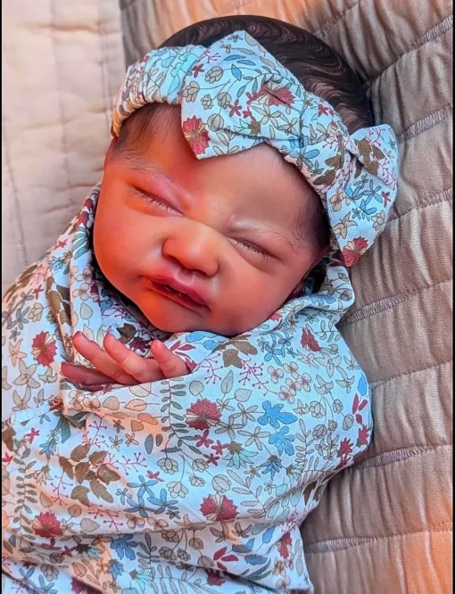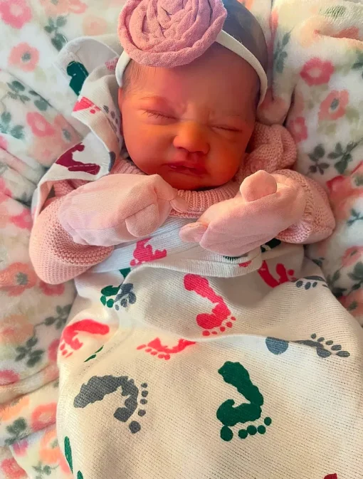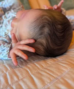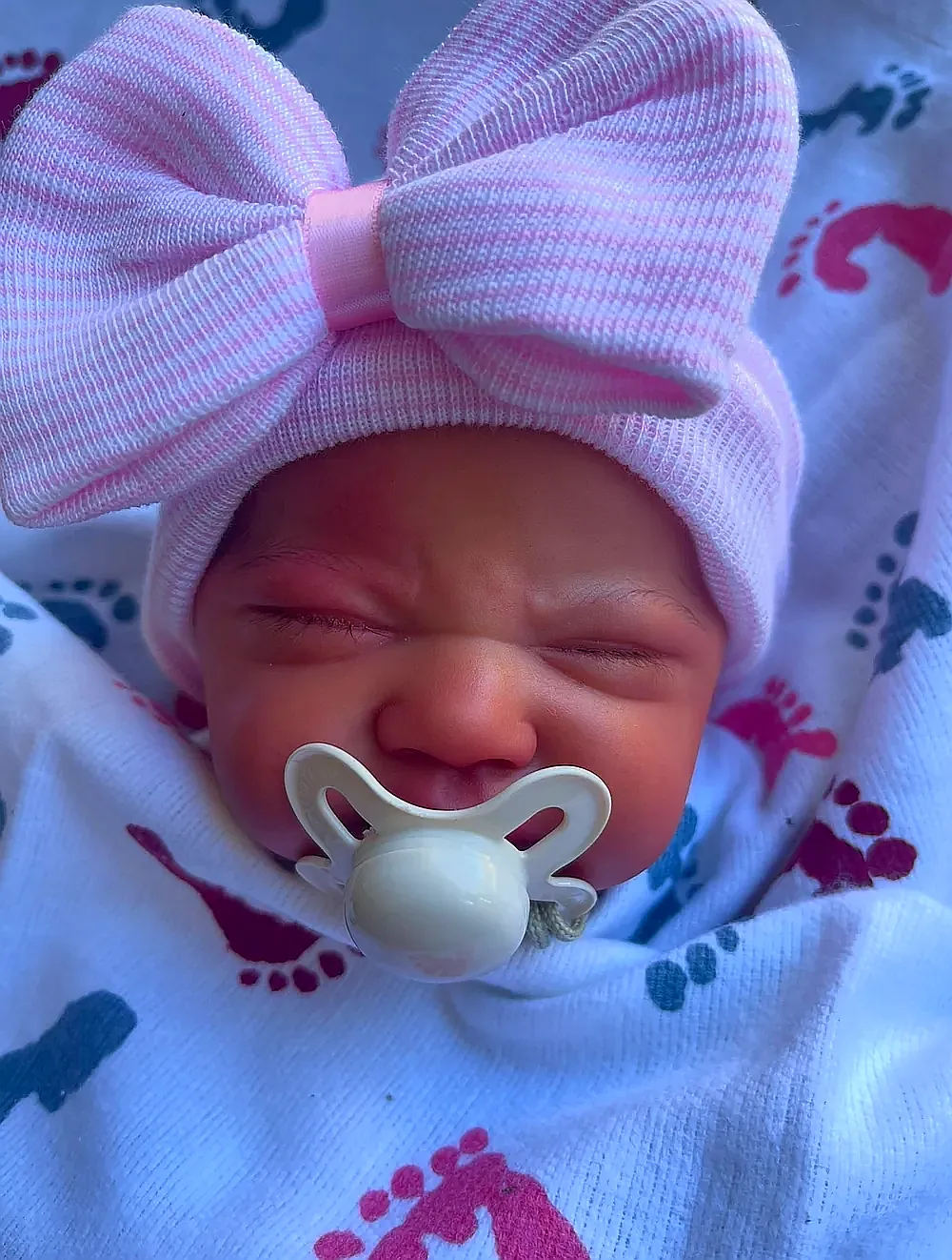 SOLE limited edition Gracie Mae. Adorable newborn scrunch, perfectly weighted and so realistic. She has beautiful dark painted hair and newborn skin tone. She is wonderful to hold in your arms. She will come with her COA, belly plate, paci and blanket and outfit of my choice.