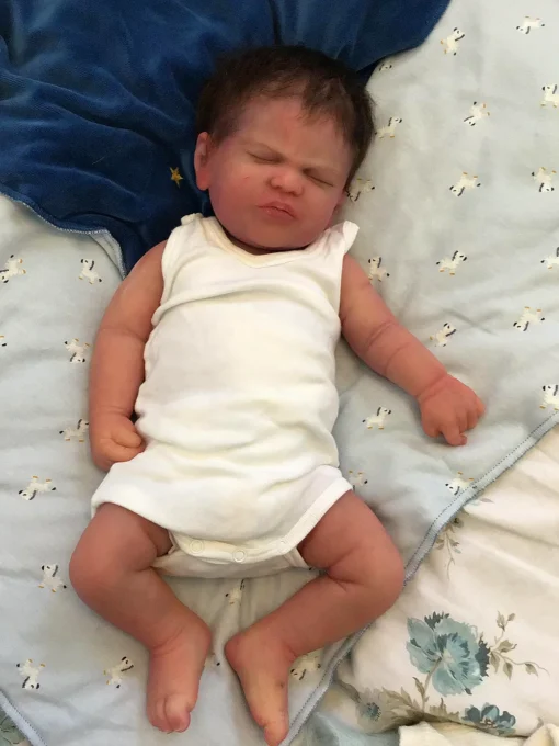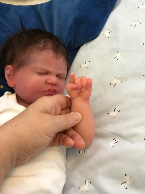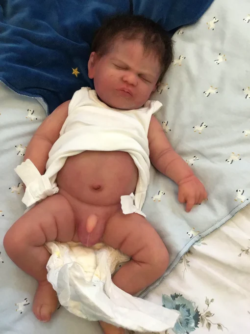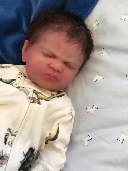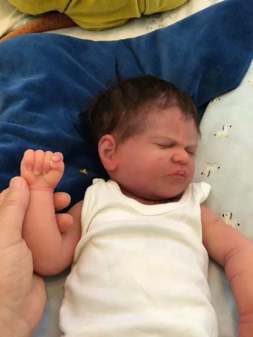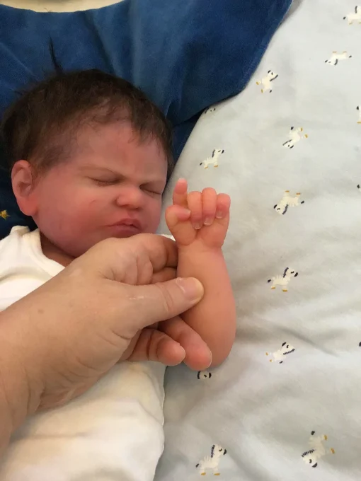 Jayce is a one of a kind doll since he was poured extremely soft by Jennifer resulting in the squishiest, wrinkliest, little baby. His silicone is absolutely incredible and he feels so realistic in your arms. Even though he is so soft he feels incredibly durable and has no tears or rips.