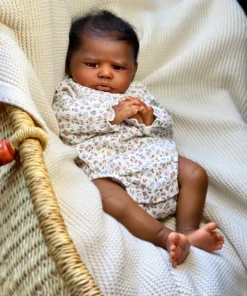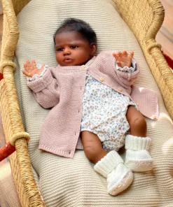 Head, limbs, and body are weighted with glass beads. She is stuffed with polyfill. Head and body is floppy for realism. Limbs move easily.