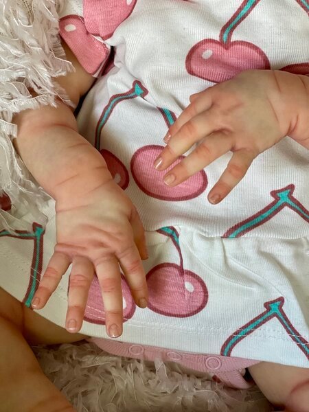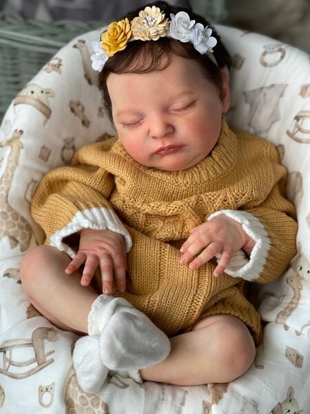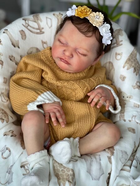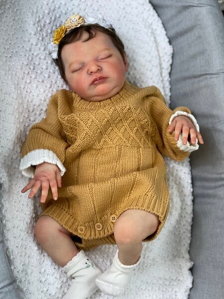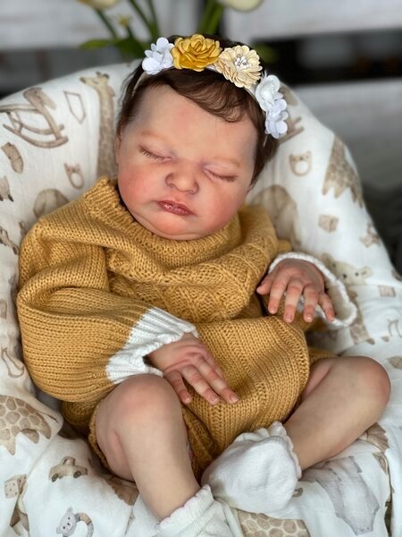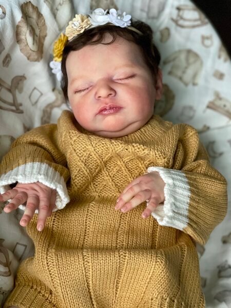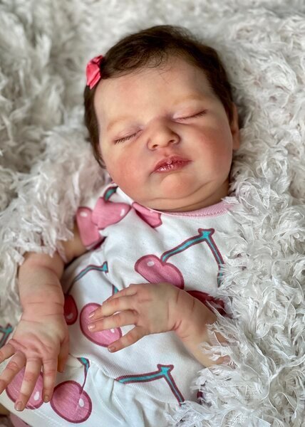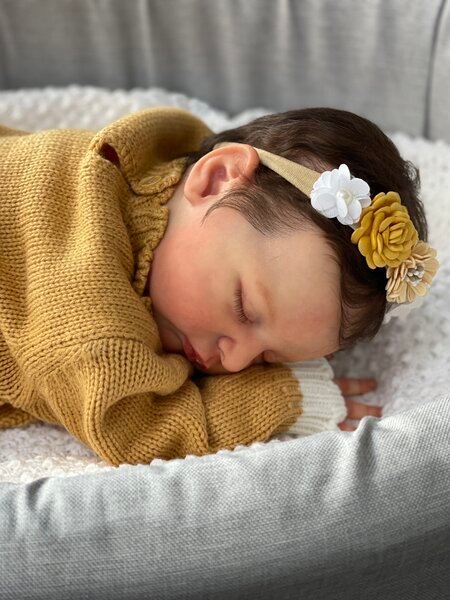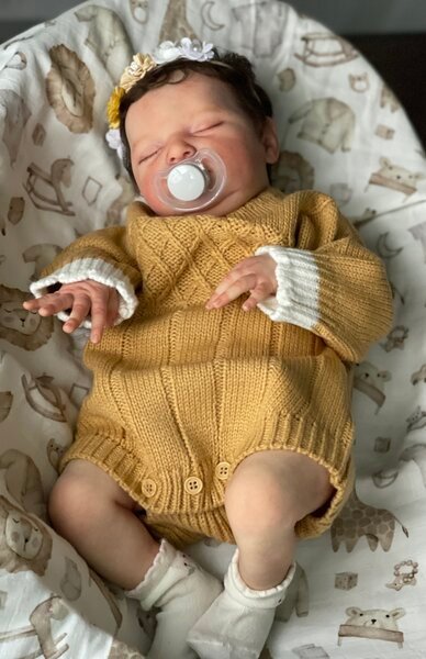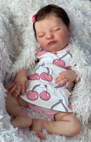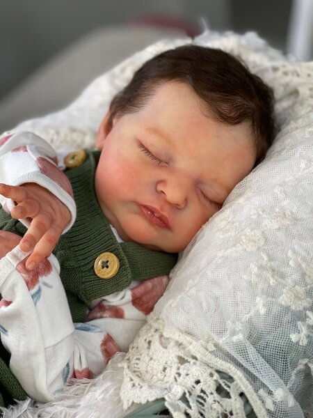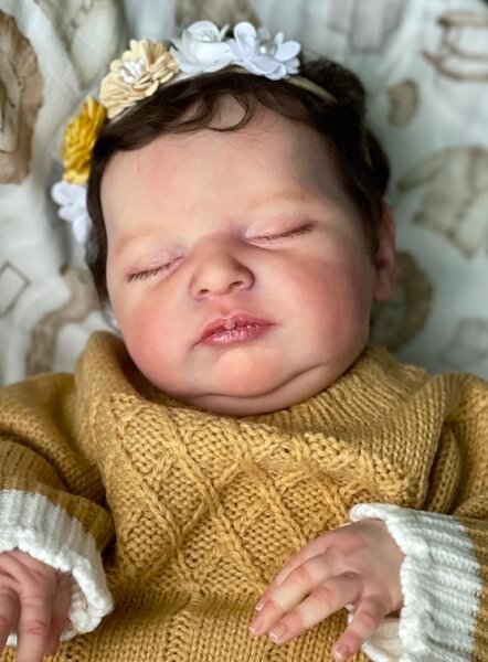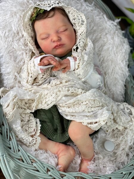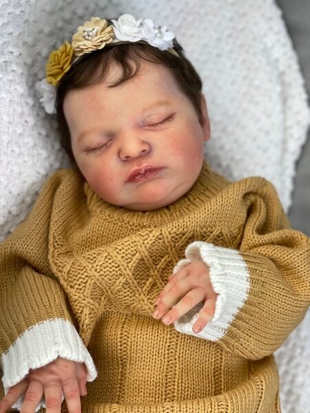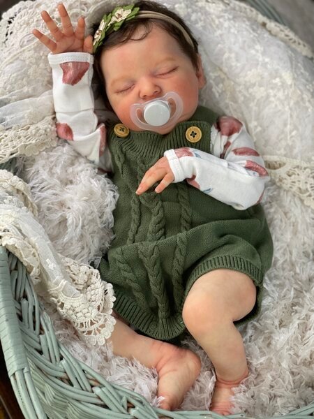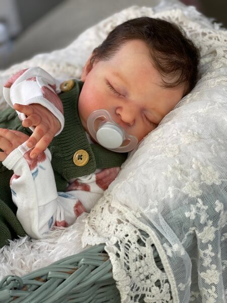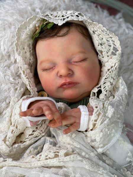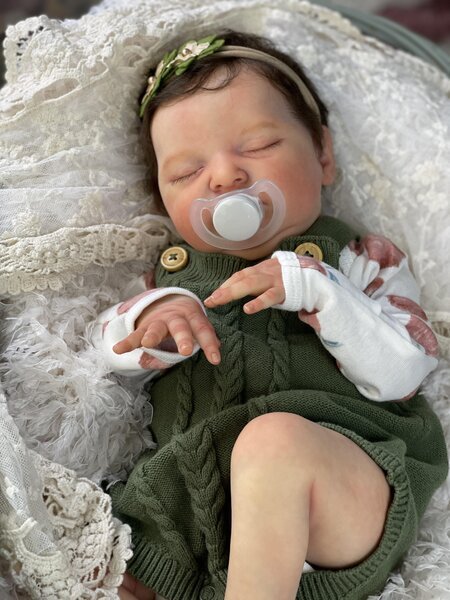 – She has very realistic newborn skin tone and I also added lanugo fiber on each side of her temples and cheeks. Laura has a magnet inside her head for a magnetic pacifier.