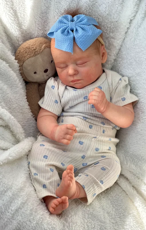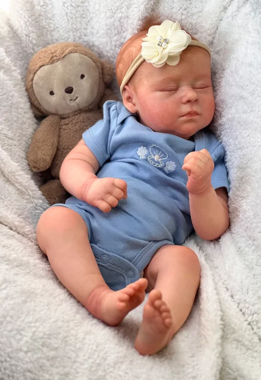 🎀She has been painted in a newborn mottled skin tone using GHSP sealed with heat set sealers. I’ve given her all kinds of tiny details like veining, textured skin on her face, capillaries, tipped nails, blushing and many more small details you would see on a real baby.