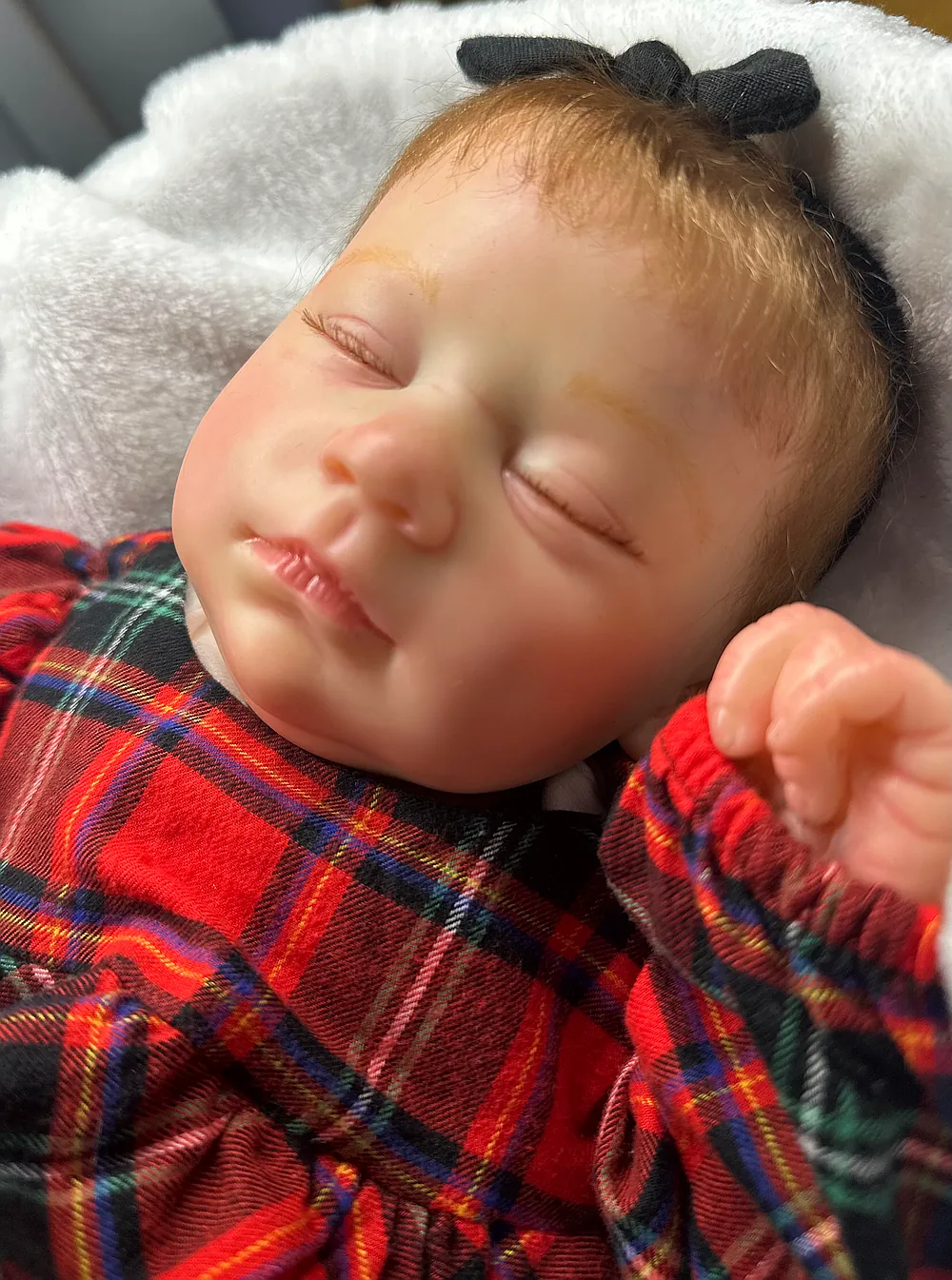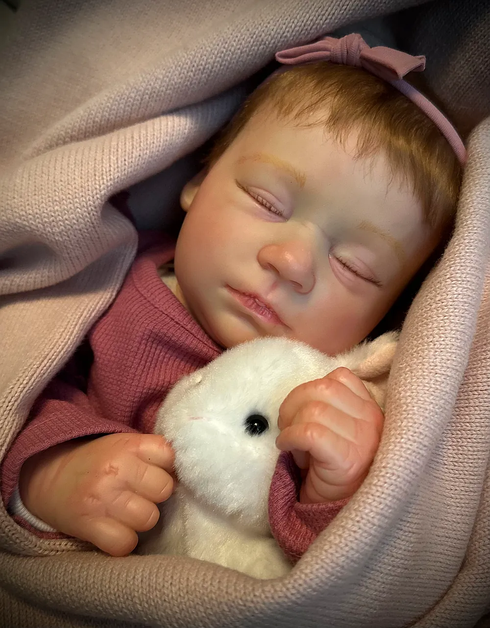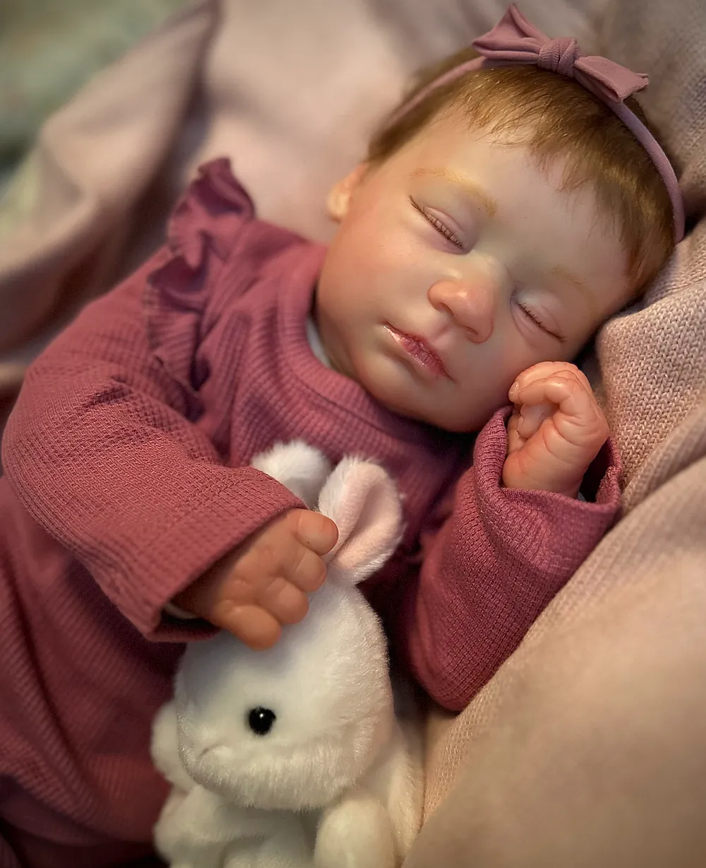 This sweet sleeping baby is Marnie by Bountiful Baby. She is 19” long and is just shy of 5 pounds. She was painted, rooted and assembled by me. She has a magnetic pacifier and was rooted with soft light brown mohair. She is such a pretty little baby. There is something so nice about holding a sleeping baby in your arms. She will come with a small box opening and is ready to go to her new home.