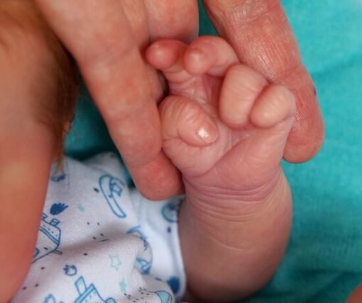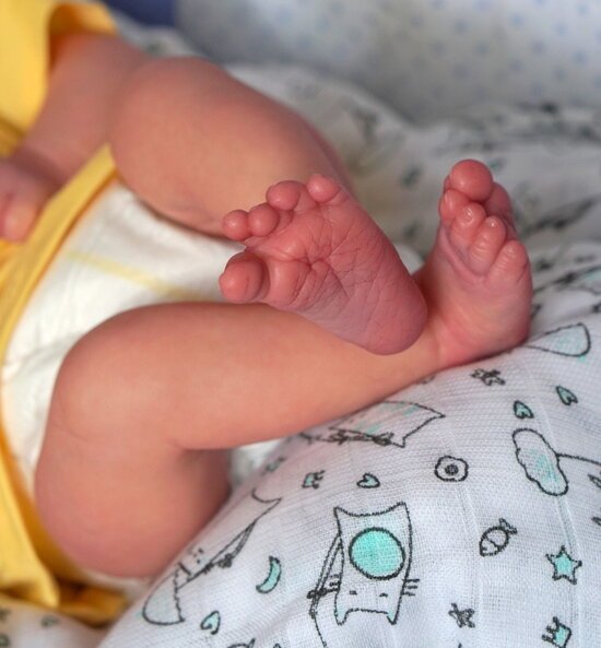 I have painted him with many thin layers of GHSP and sealed him with a protective layer of a special mixture of GHS varnishes. He has veins with „under the skin” effect, lifelike creases, finger-, and toe nails and newborn mottling.