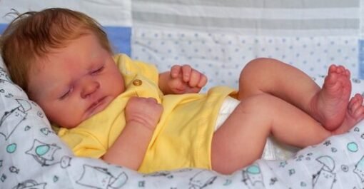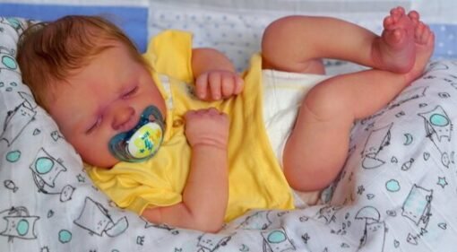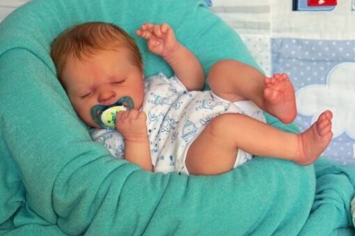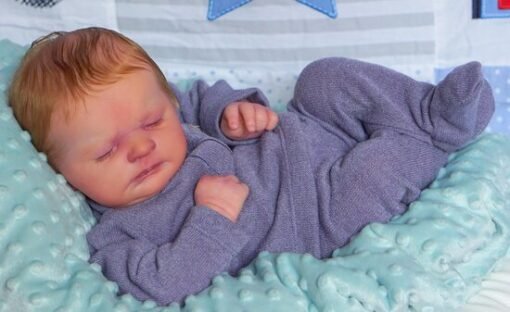 This sweet little boy is Realborn Martin asleep from Bountiful Baby