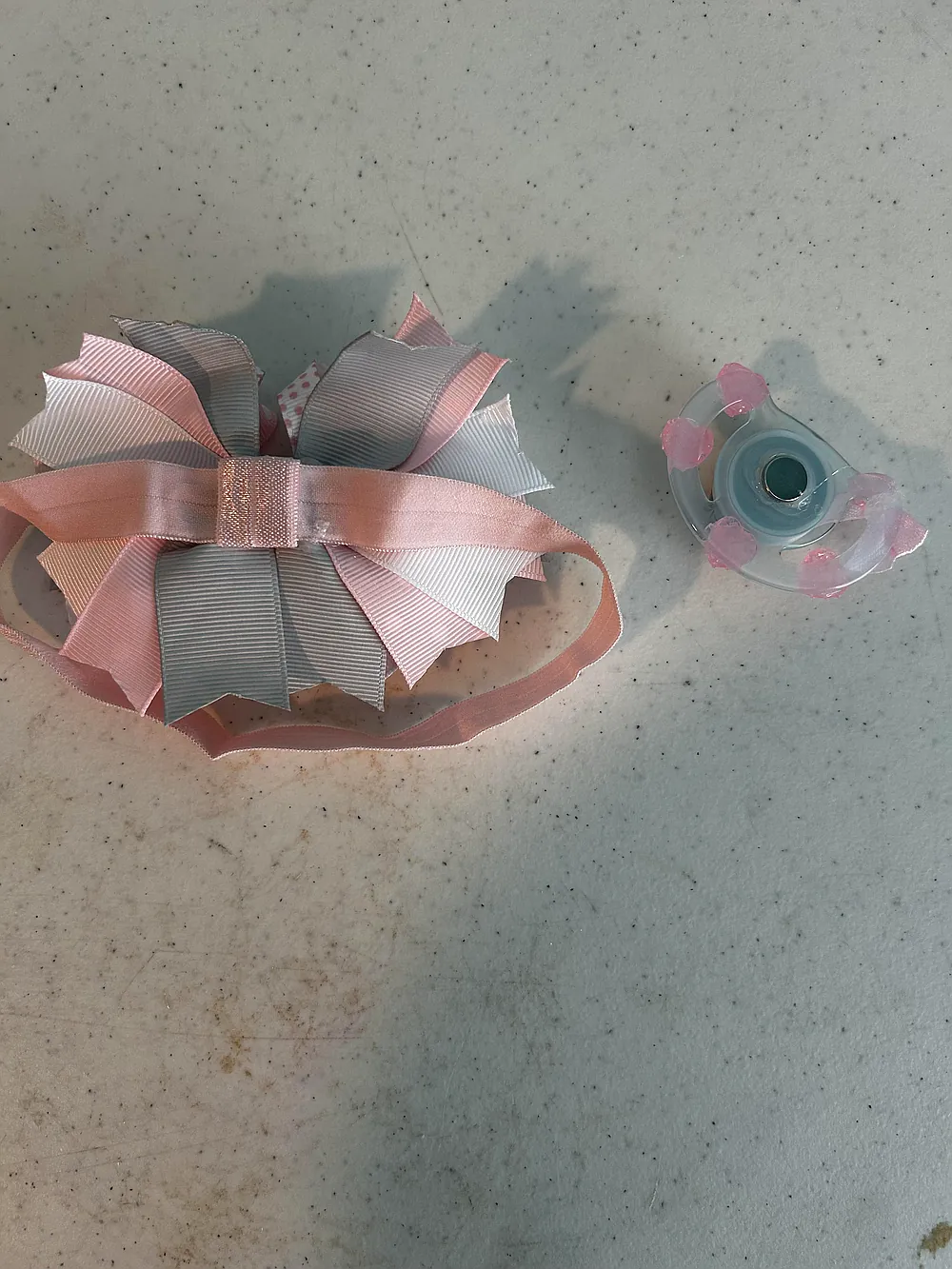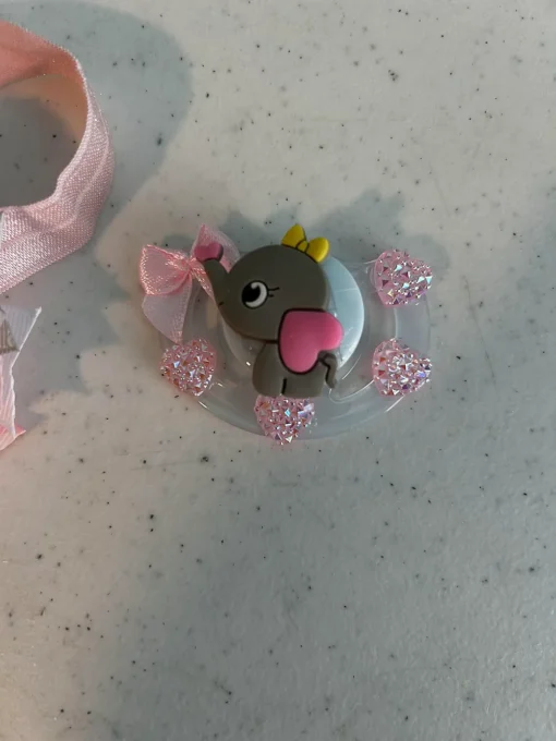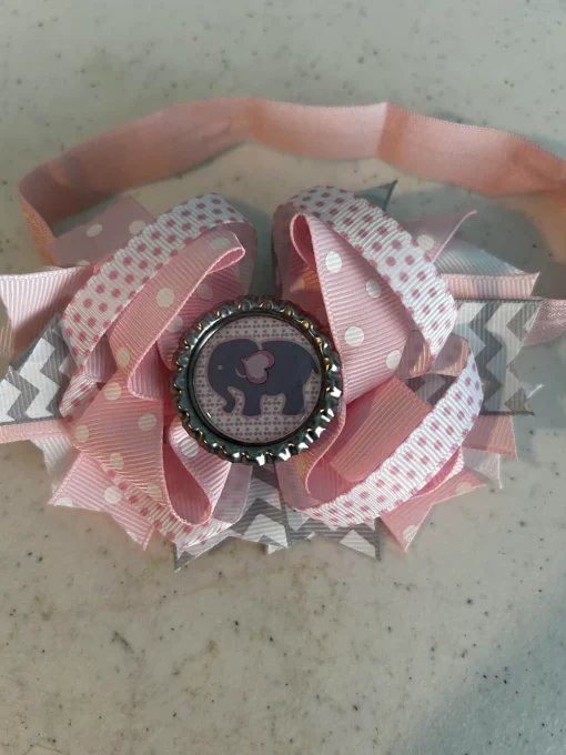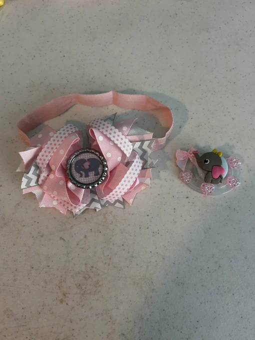 Elephant themed magnetic pacifier and head wrap.
