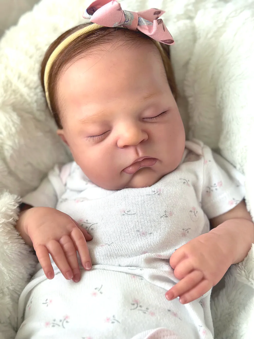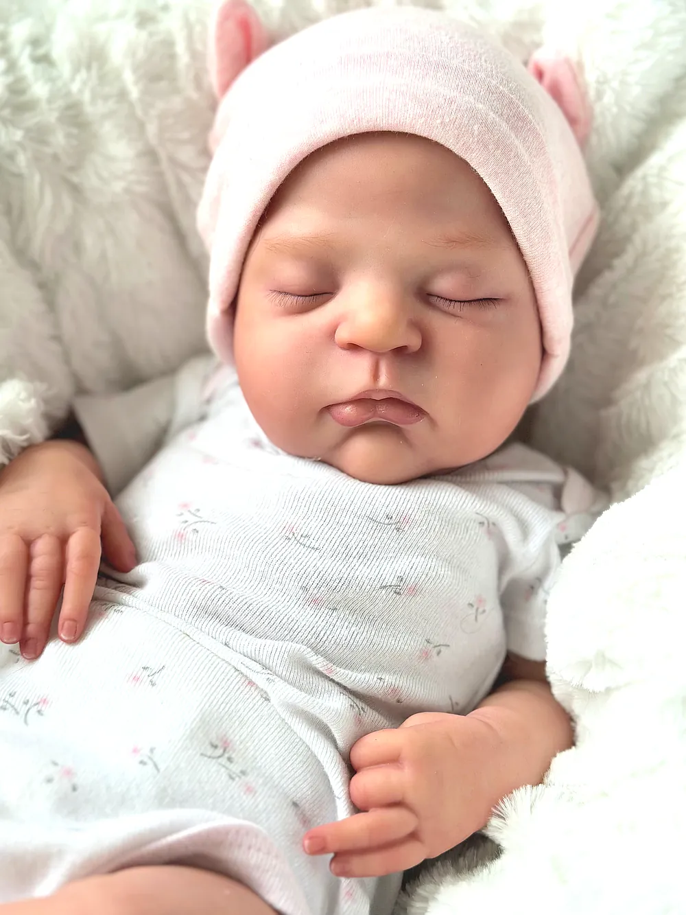 • Hand-painted with many layers of Genesis Heat Set Paints in a soft newborn Caucasian skin tone.