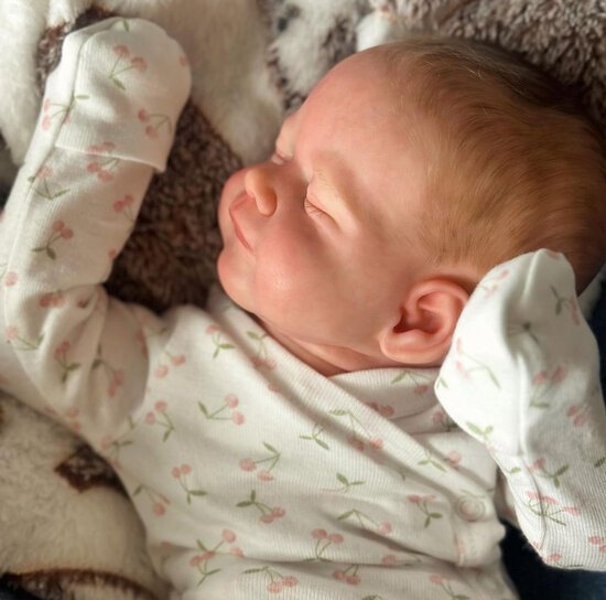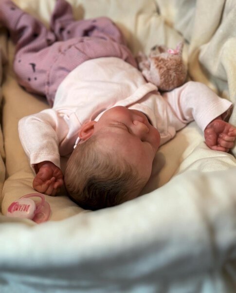 Beautiful Renee by Harley Rose! Artist is Angie from Sprung From Neverland Nursery. She is beautifully completed with lots of details and combi hair (painted with a bit of rooted hair on top for realism but simplicity to maintain). This little smiling sweetie was created in November of 2024, I received in mid December. Please watch the linked box opening video for more images and close ups of the sculpt and details.
