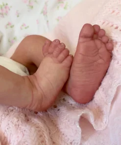 Realistic baby skin tone complete with blushing, mottling, and veins. Nails are sealed with gloss.