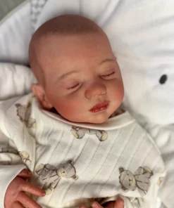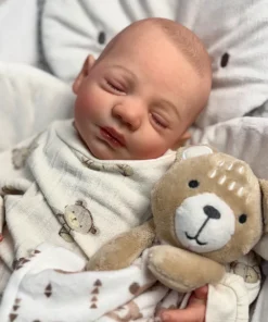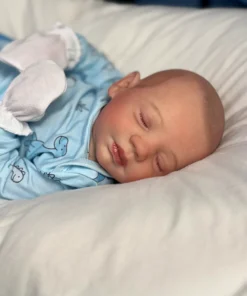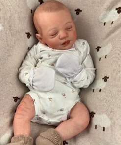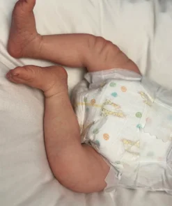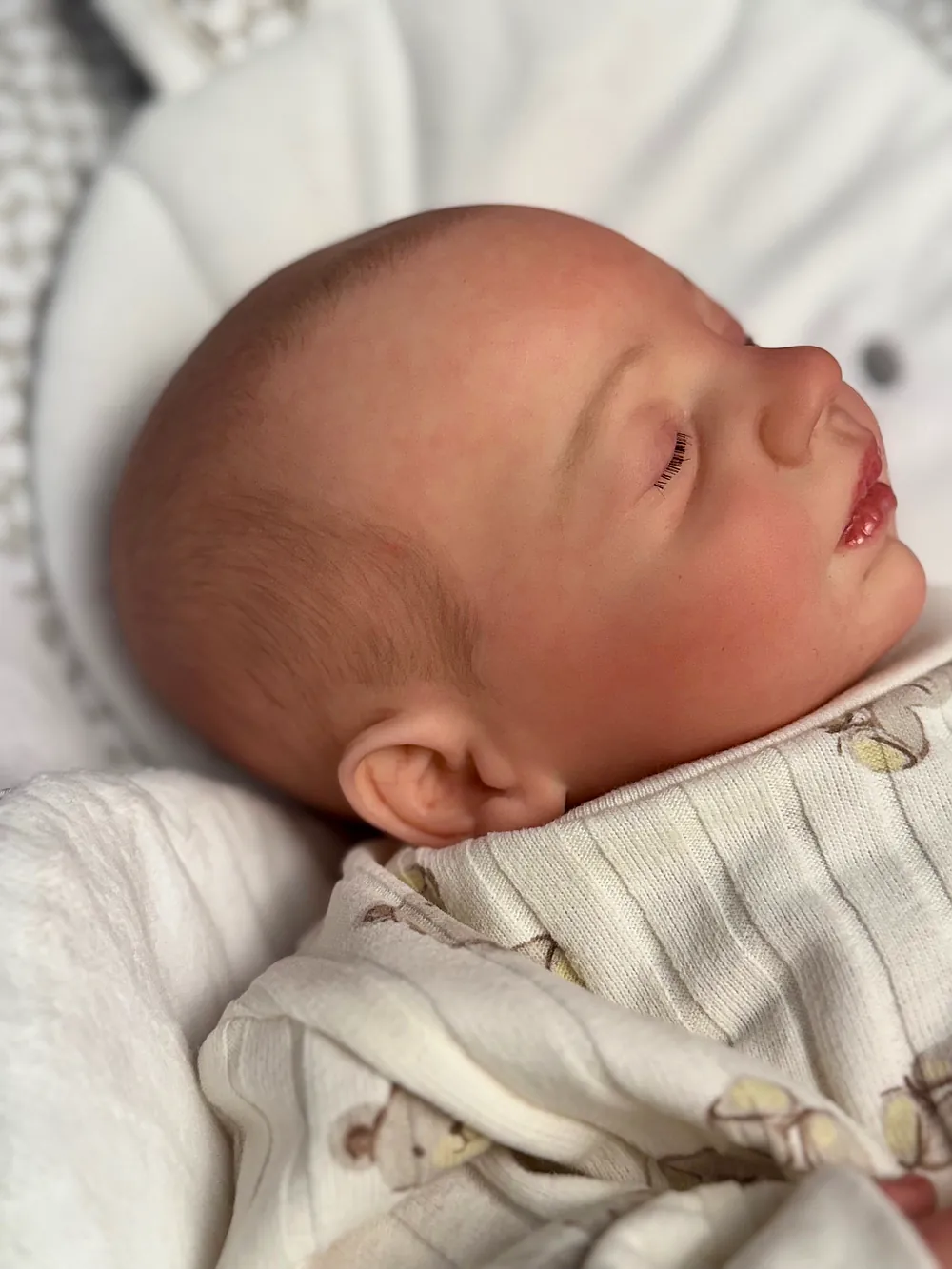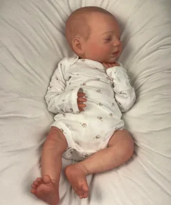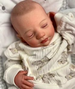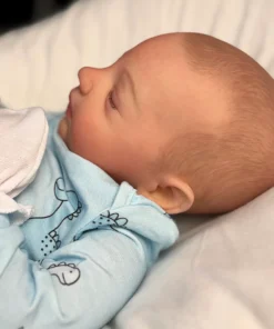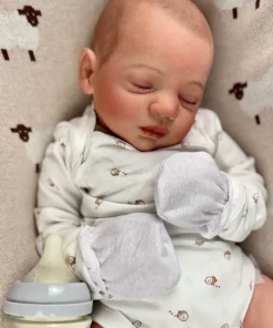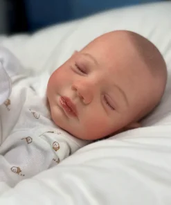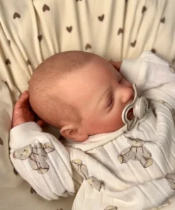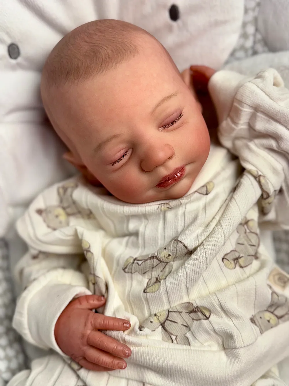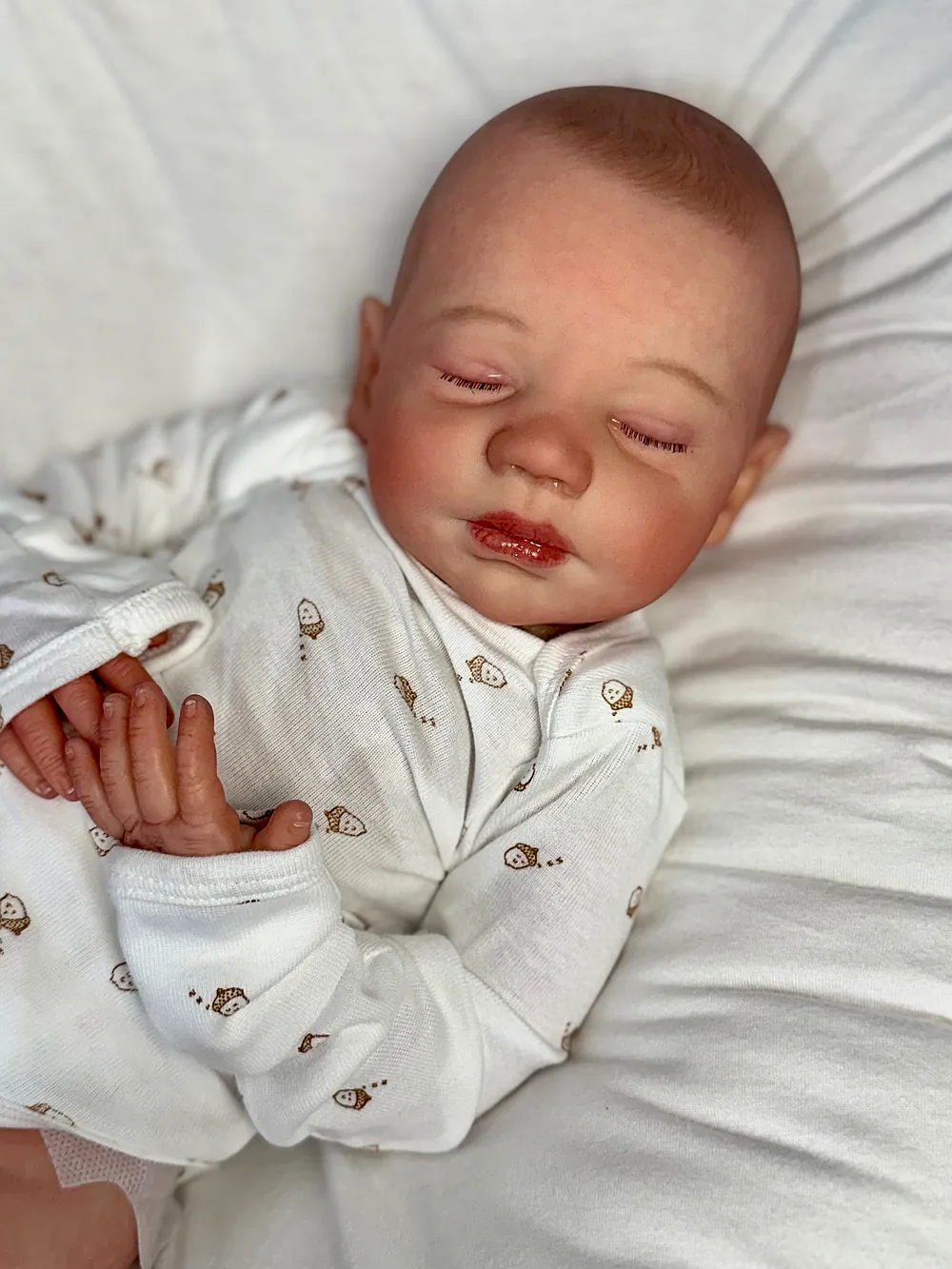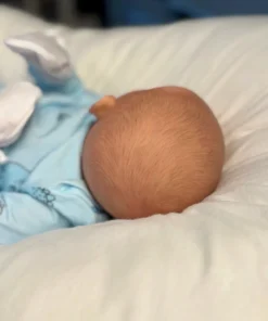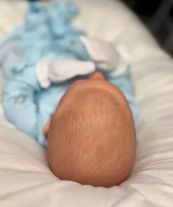 I painted Steven with GHSP and finished with a matte varnish. He has subtle veining, capillaries, and newborn blemishing and painted brown hair. Steven is weighted to feel like a newborn, so you will want to support his head and pat his butt 🙂
