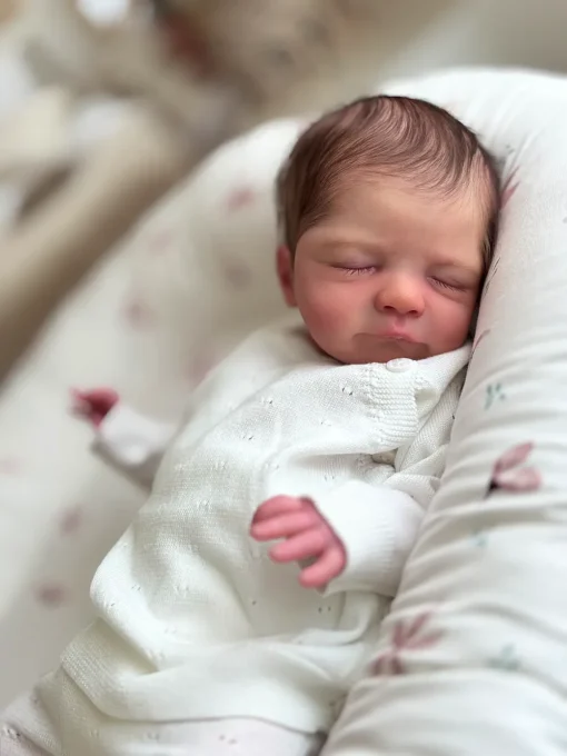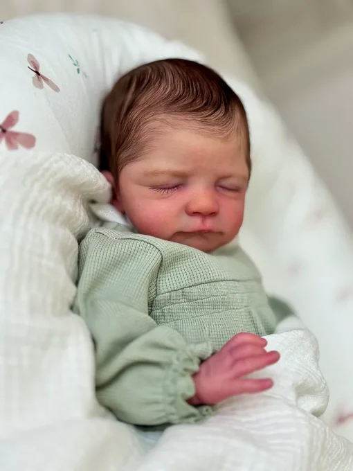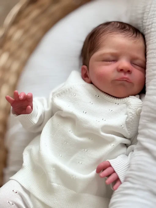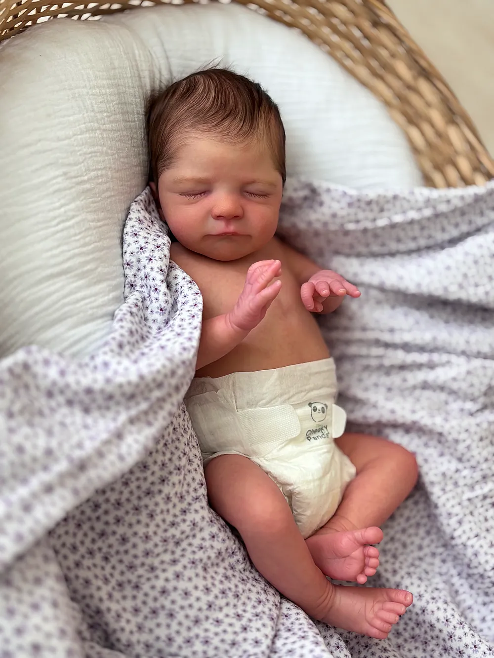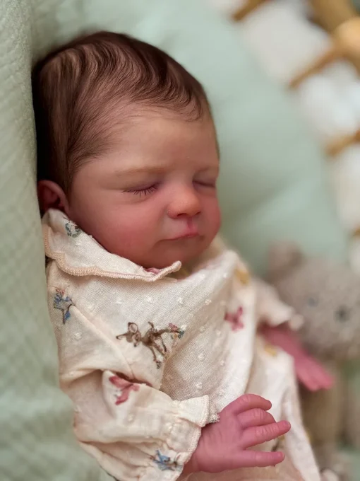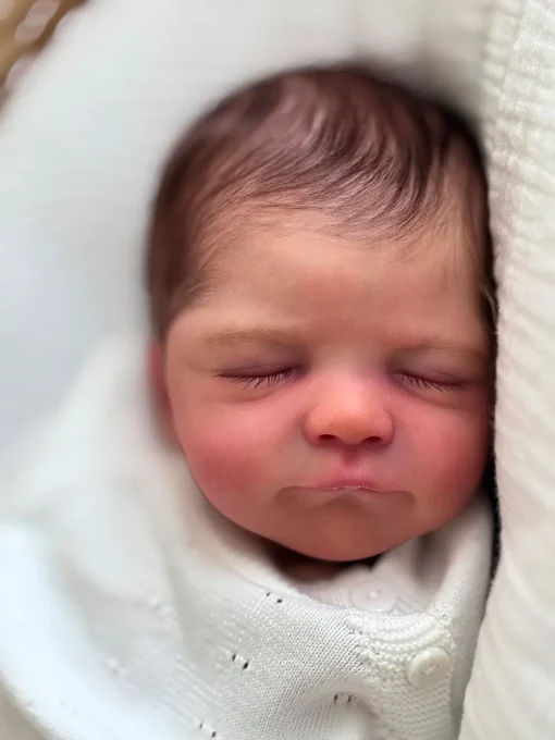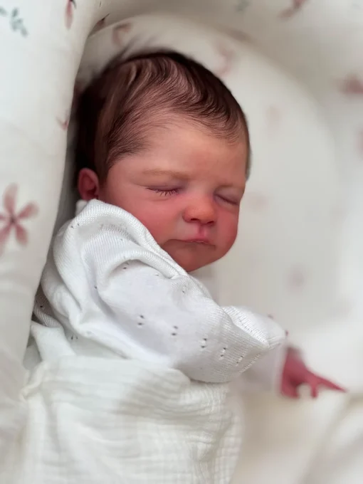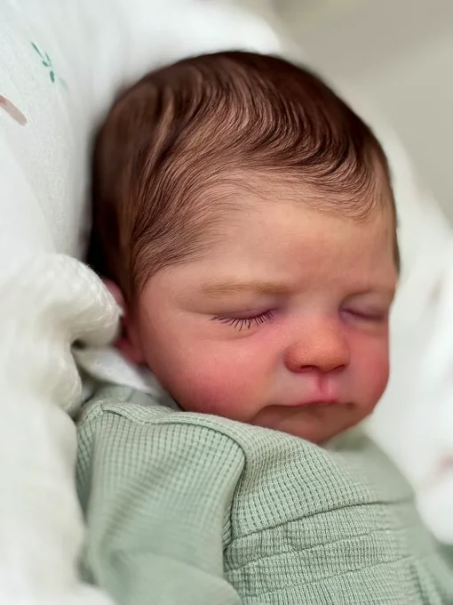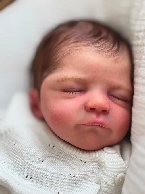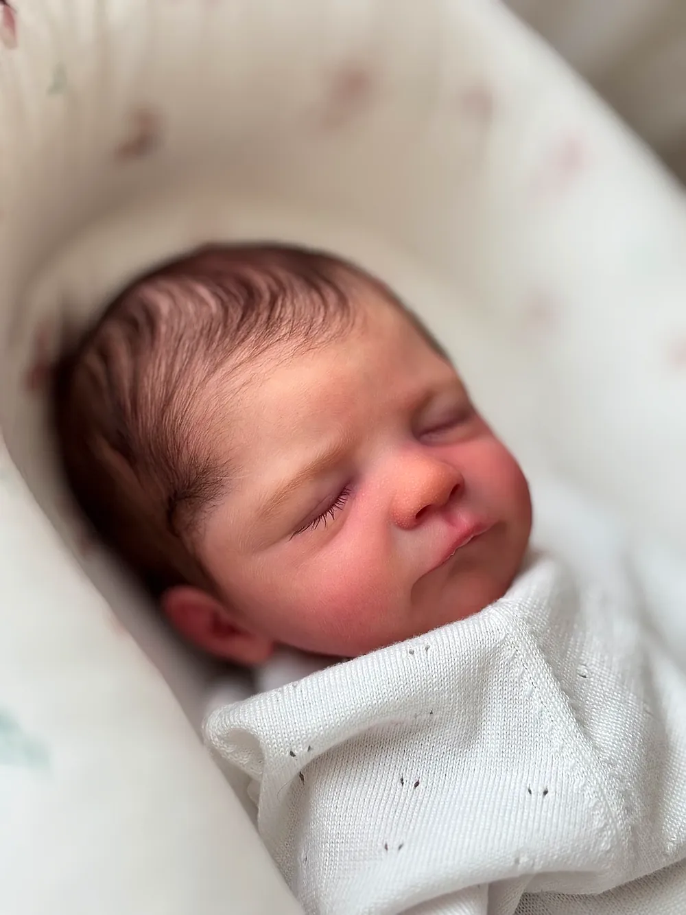 Baby nails and details are finely painted , lips and nose lightly moistened , eyebrows delicately painted and rooted.