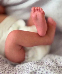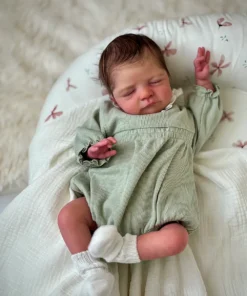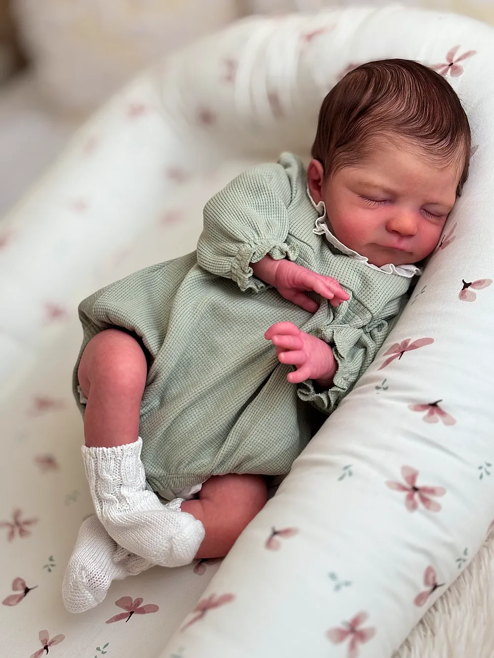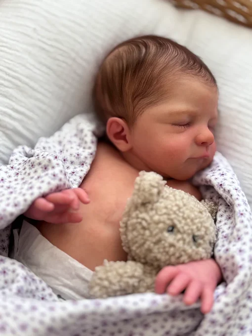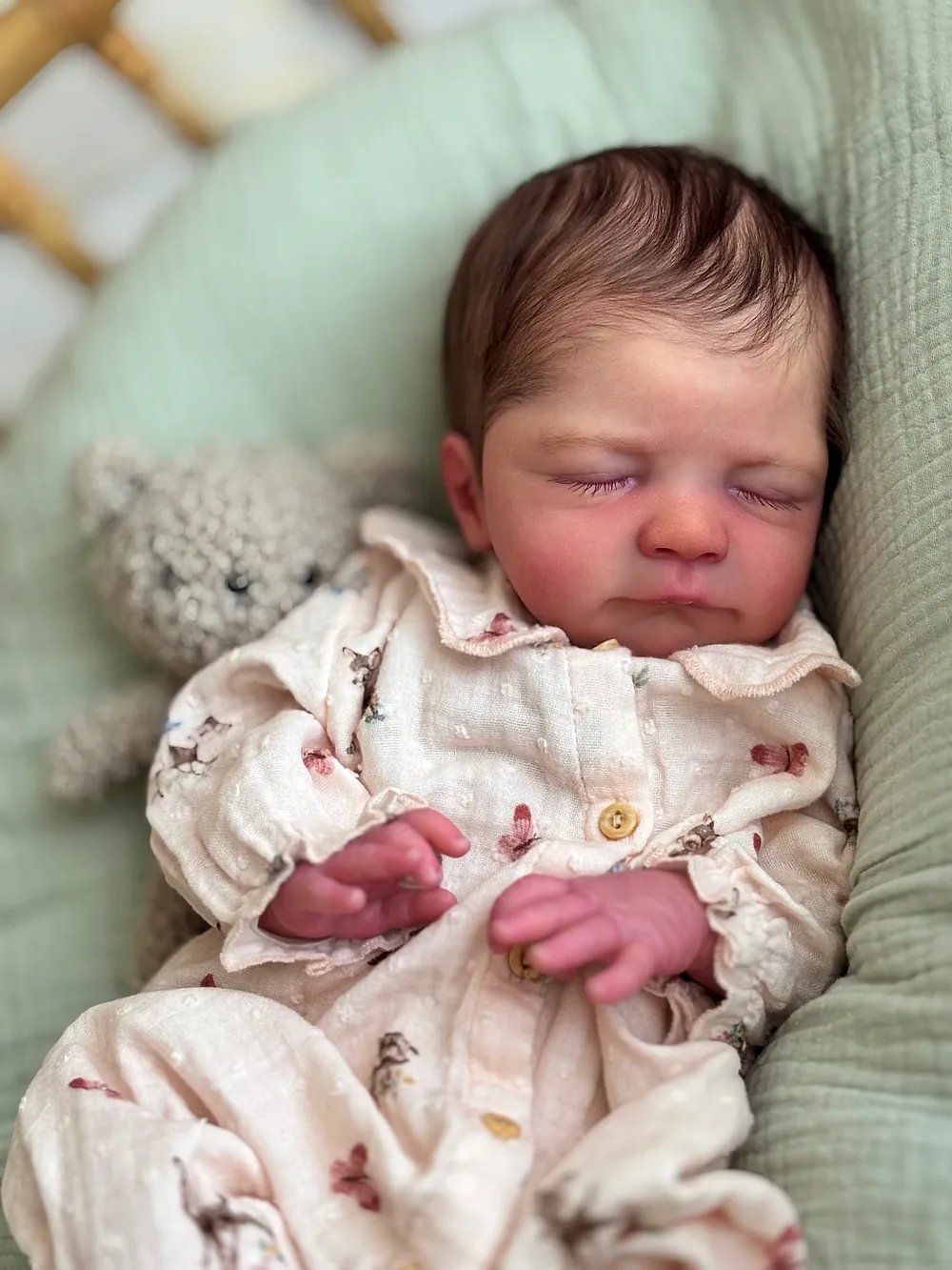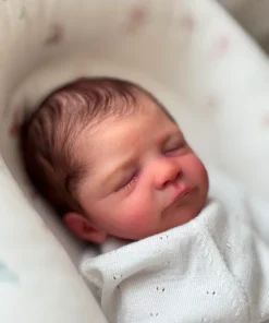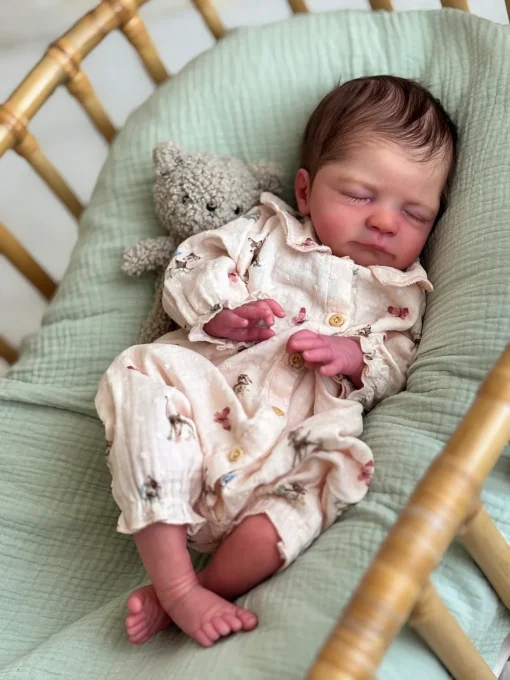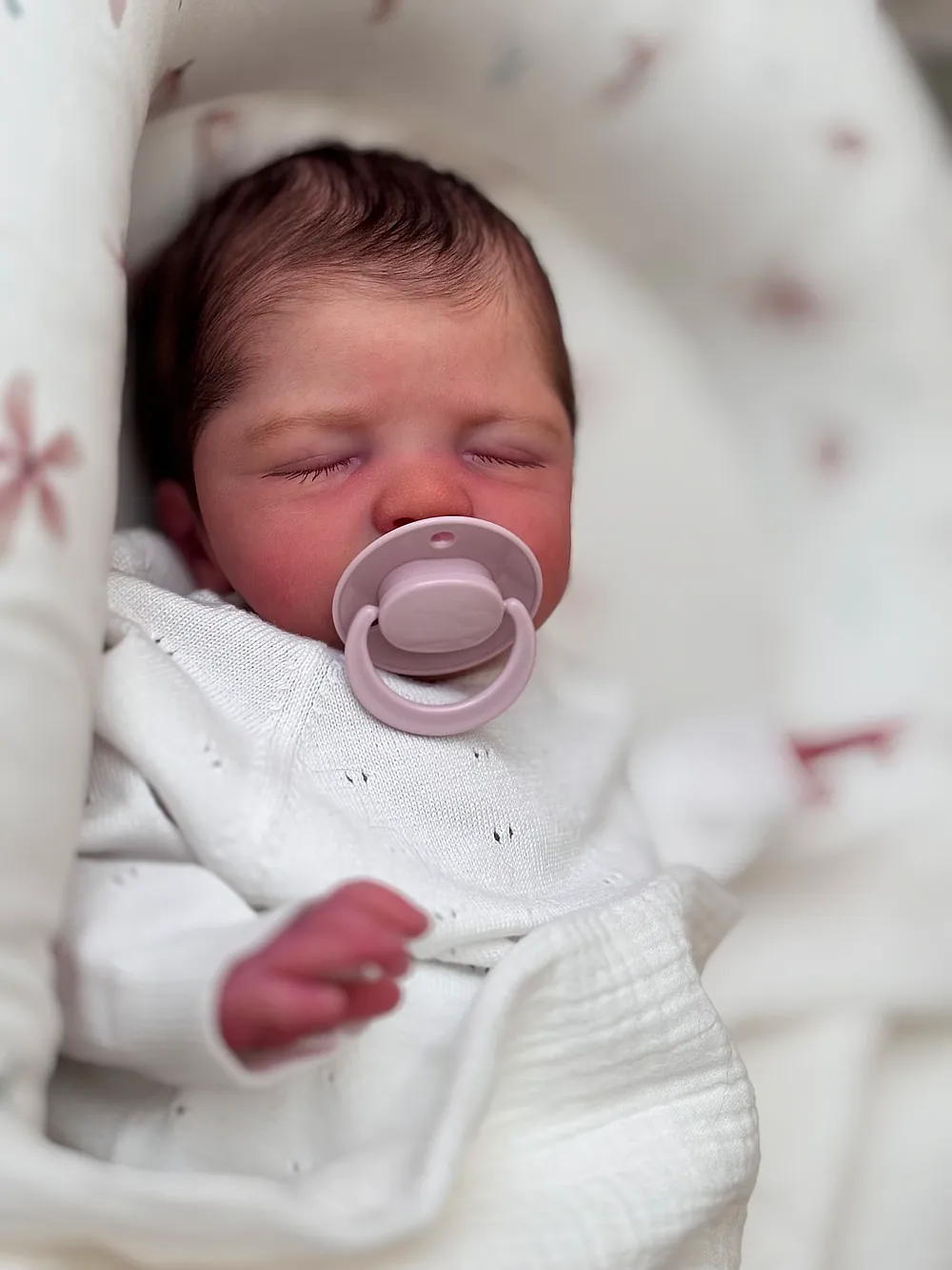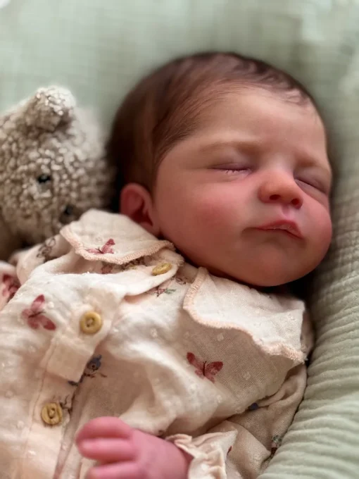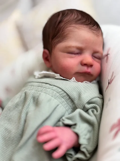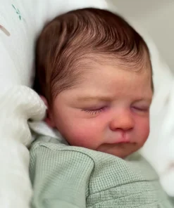 Baby nails and details are finely painted , lips and nose lightly moistened , eyebrows delicately painted and rooted.
